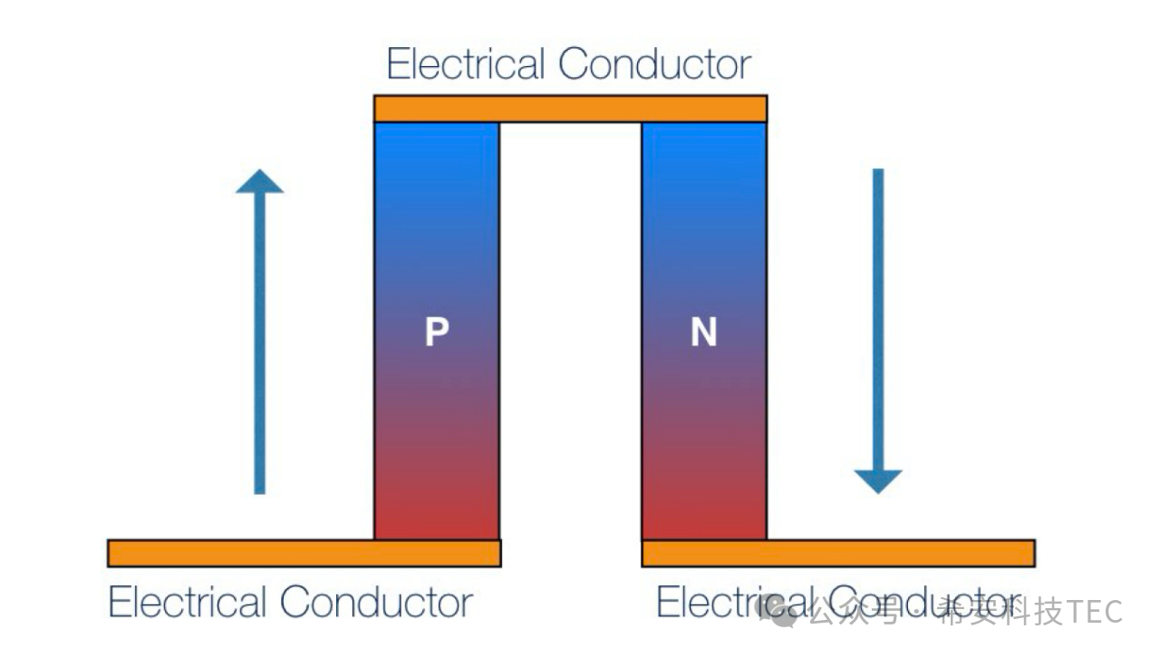 När likström passerar genom ett termoelement leder halvledarkornen av P-typ och N-typ (P-typ (dopade med trevärda element som bor, som har hål) elektricitet genom hål och blir positivt laddade; Ett par av N-typ (dopade med femvärda element som fosfor) som leder elektricitet med negativt laddade elektroner och är laddade.